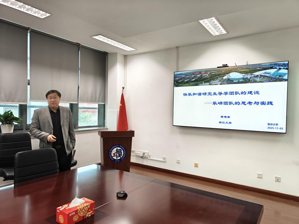 为进一步强化研究生导师队伍建设、提升导师指导能力,2025年11月5日下午,复旦大学药学院第十四期“松德教育教学论坛”在晶晖厅顺利举行。本次论坛特别邀请浙江大学求是特聘教授、创新医药研究院副院长高建青作《快乐和谐研究生导学团队的建设和实践》专题报告。药学院副院长戚建平及各系研究生导师代表出席会议。