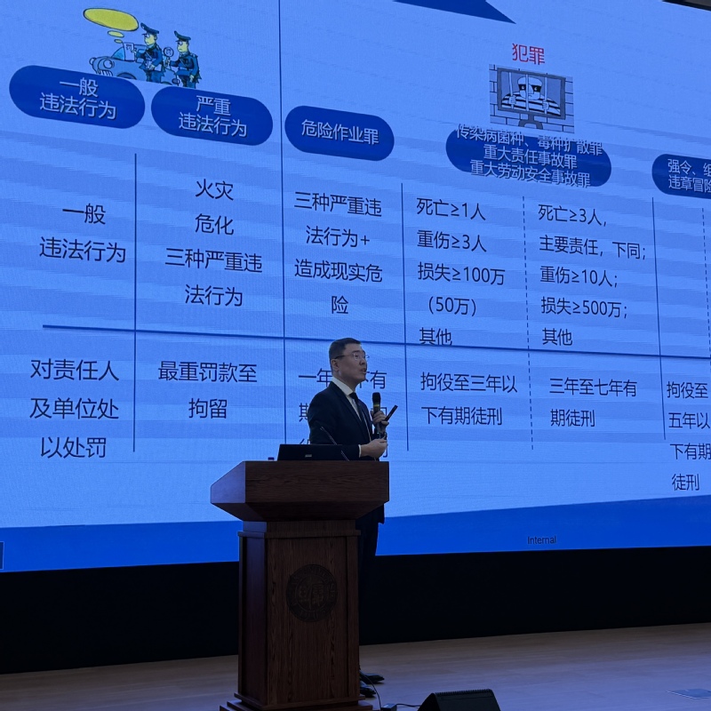 培训会最后,药学院党委书记王建新进行总结讲话。他代表学院感谢朱静亮律师的精彩报告,指出本次培训从事故追责视角审视安全管理,对增强全员责任意识具有深刻意义,并强调必须健全制度、规范培训、强化监督,推动安全管理落到实处;每位负责人都应以案为鉴,切实履行主体责任,共同筑牢实验室安全防线。
