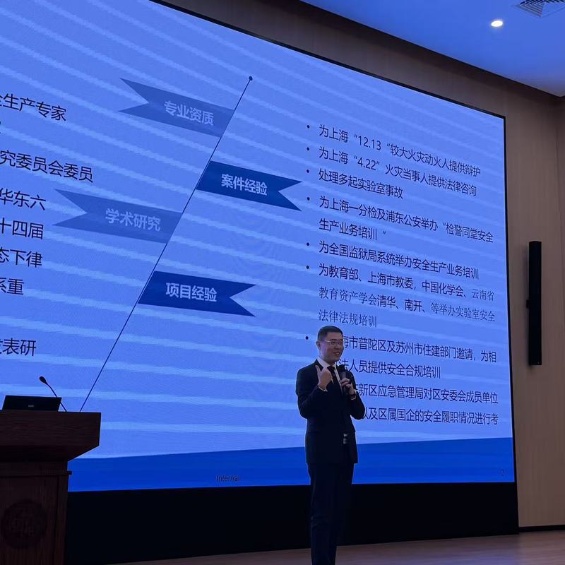 本次培训特邀上海市应急管理局专家库专家、上海君澜律师事务所合伙人朱静亮律师担任主讲。朱静亮结合自身安全生产法律实务经验,以《从事故调查追责看实验室全员安全责任制的落实》为题,通过典型案例剖析,系统阐述了实验室安全责任体系与全员责任制的落实路径。报告聚焦责任划分与制度执行,强调将安全要求贯穿科研全过程。在随后的互动环节,各课题组负责人围绕实际管理问题踊跃提问,朱律师一一给予专业解答,现场交流氛围热烈。