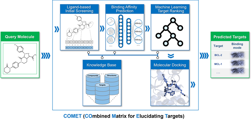近年来,复旦大学药学院王任小团队开发了一种名为COMET(Combined Matrix for Elucidating Targets)的反向钓靶预测算法。该研究构建了一个包含配体相似性评分、基于结构的结合亲和力预测以及分子对接的组合式框架,并通过机器学习算法实现了靶标的高精度排序。日前,该项工作以“COMET: A Machine-Learning Framework Integrating Ligand-Based and Target-Based Algorithms for Elucidating Drug Targets”为论文标题,在线发表在药物化学领域权威期刊Journal of Medicinal Chemistry上。